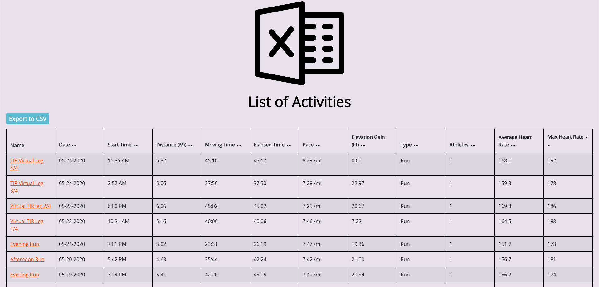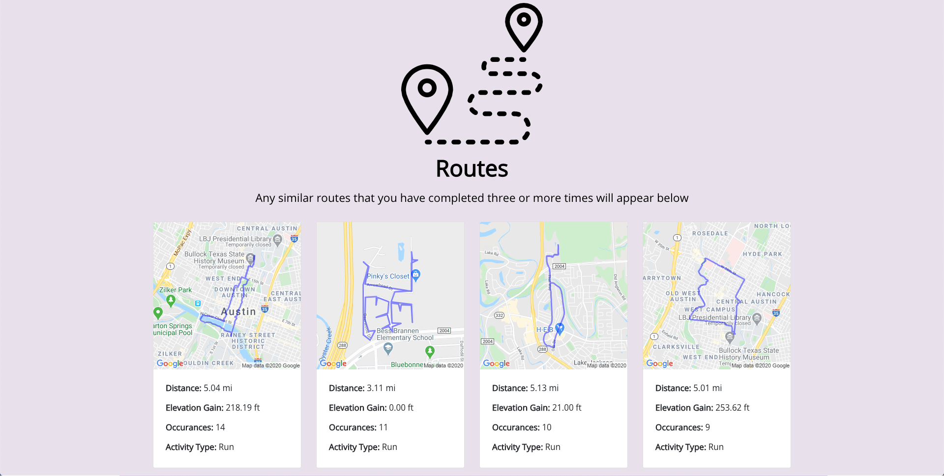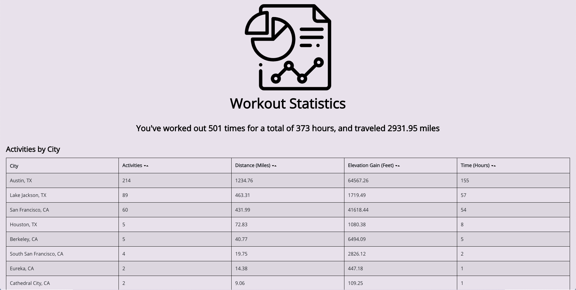 Workout Heatmap is a Web App used by UT Austin running club peers that connects with your Strava Account to provide an interactive map and analysis of your workout data. Additionally, you can see your perceived workout effort, get a breakdown of intensity zones, know your likelihood of exercising on a given day, view frequented routes and export your data to Excel.